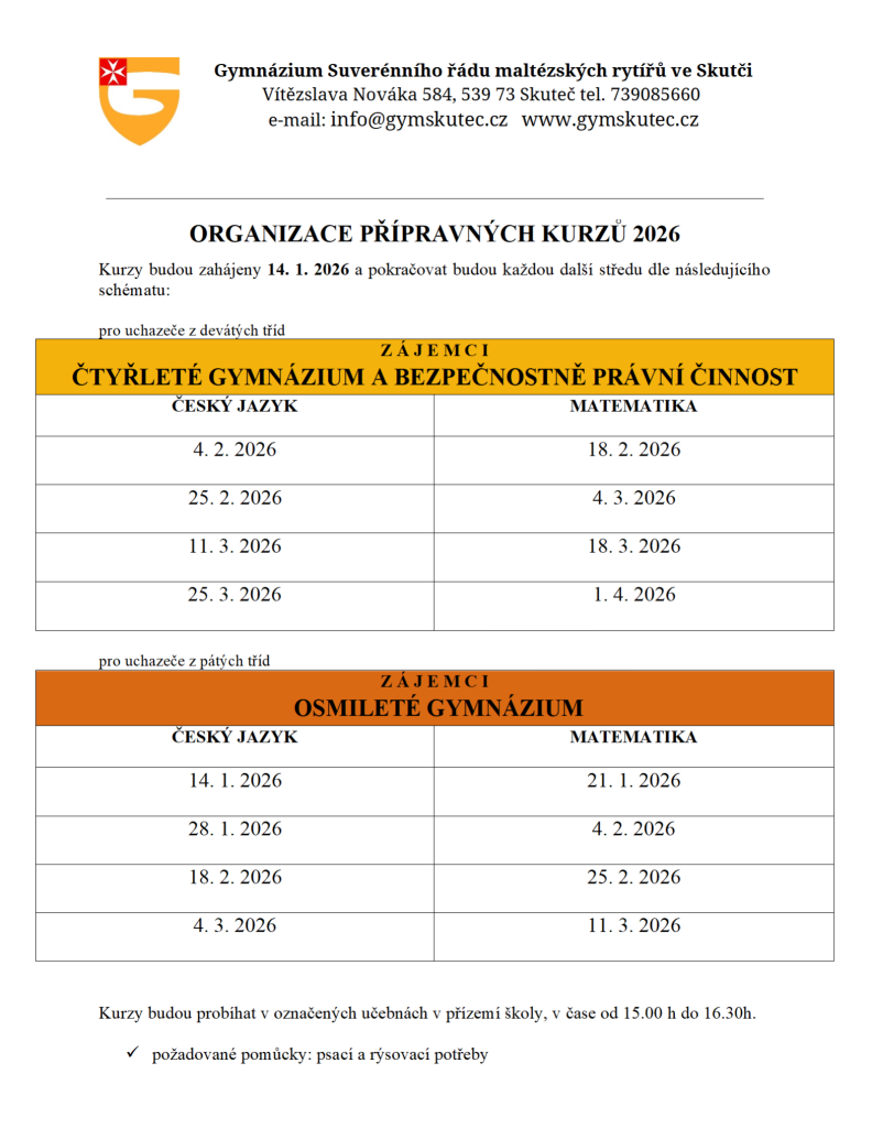 Přípravné kurzy ČJ, M